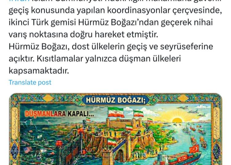 “Təhlükəsiz keçid üçün İranın müvafiq orqanları ilə aparılan koordinasiyaya əsasən, ikinci Türkiyə gəmisi Hörmüz boğazından keçərək son təyinat yerinə doğru yola düşüb.