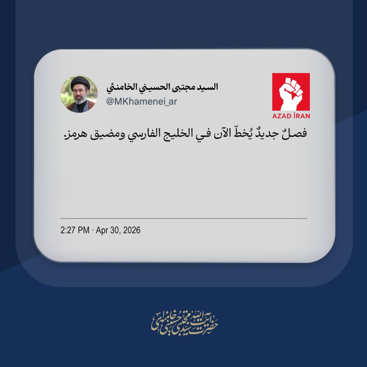 Bu gün İranın ali rəhbəri Müctəba Xameneyi “X” hesabında Hörmüz boğazı və Fars körfəzi ilə bağlı paylaşım edib.